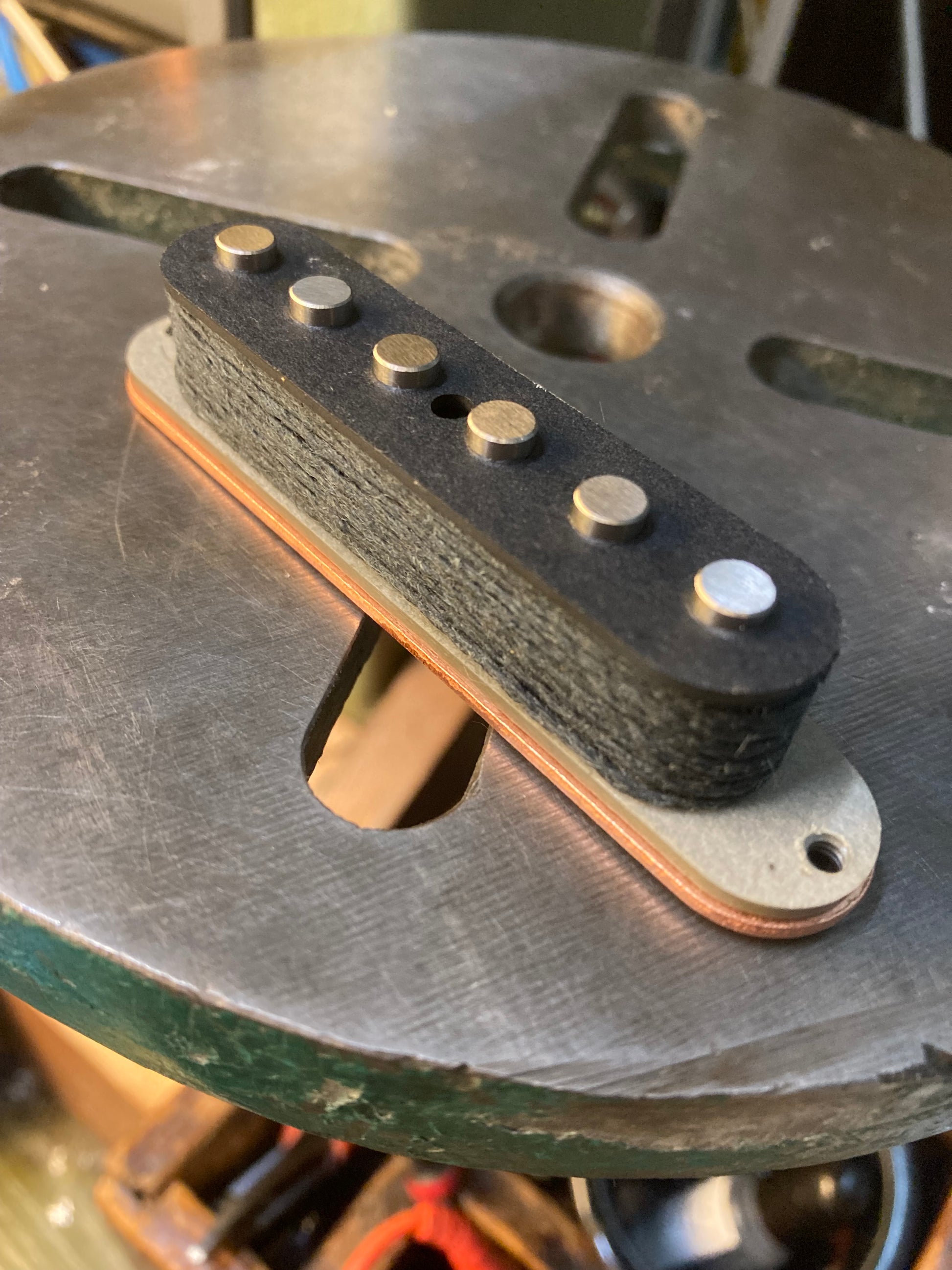 .195” Alnico 3, flat pole/flush to cover 43awg plain enamel wire, baseplate and string wrap on bridge pickup, neck and middle pickup coils taped.