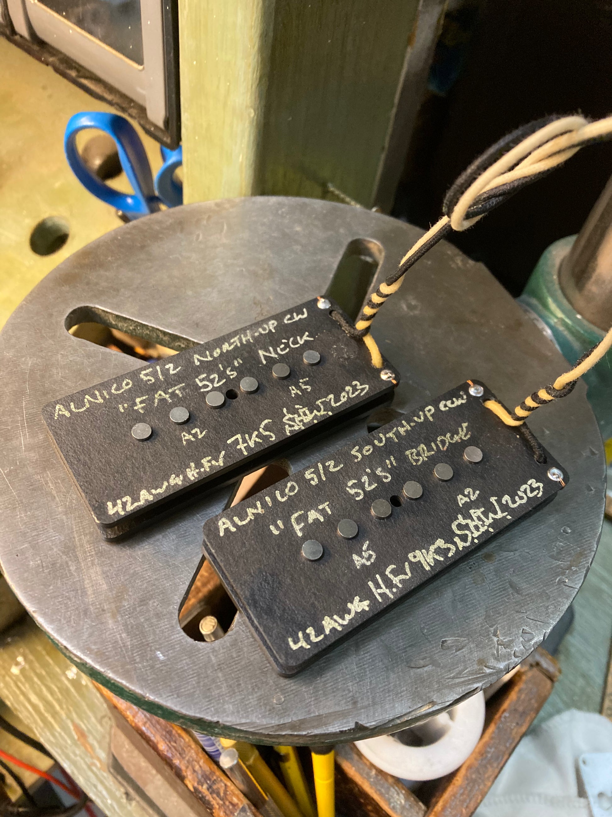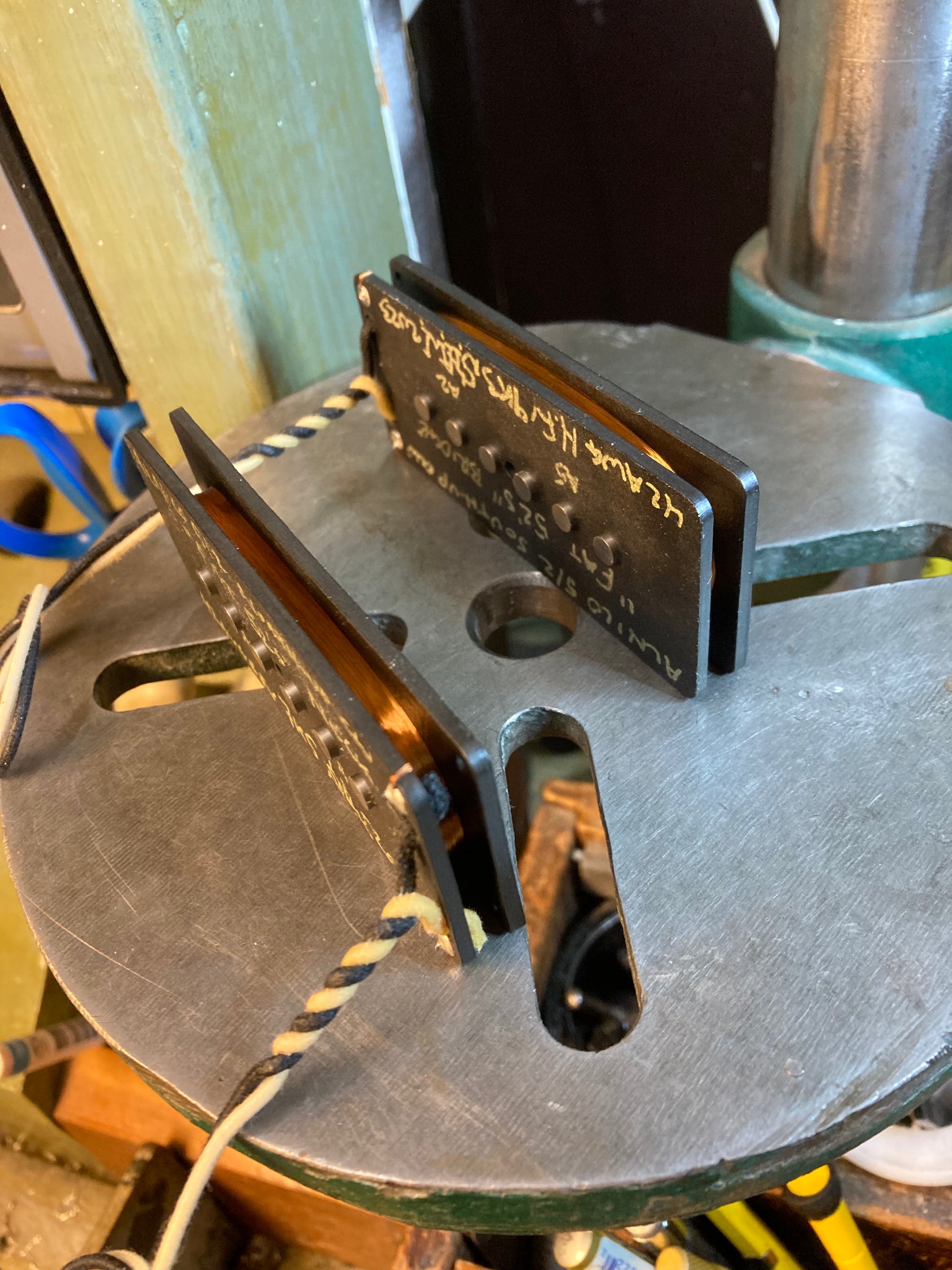 -Wound to ~7k5 neck, ~9k3 bridge with 42awg heavy FormVar, ideal with 1 meg pots.
