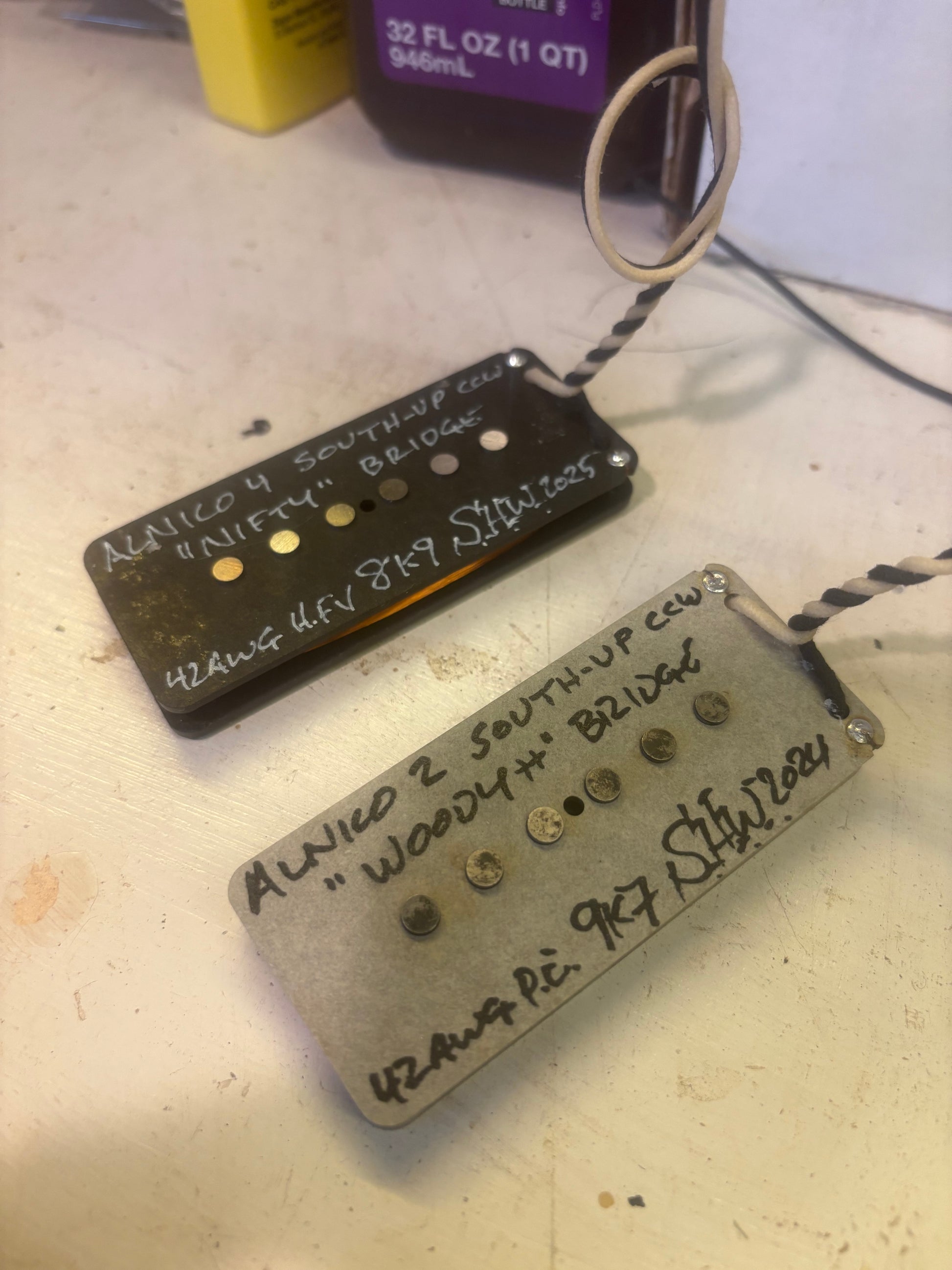 Trade in 2024 Woody++, A2 .195” dia magnets, 9k7, right on spec. Warm treble, verging on P-90 real present mids, soft smooth bass, nice bloom to the notes with A2. Perfect condition, gave it a fresh dunk in the wax tank and it looks 100% as new though it is a used pickup